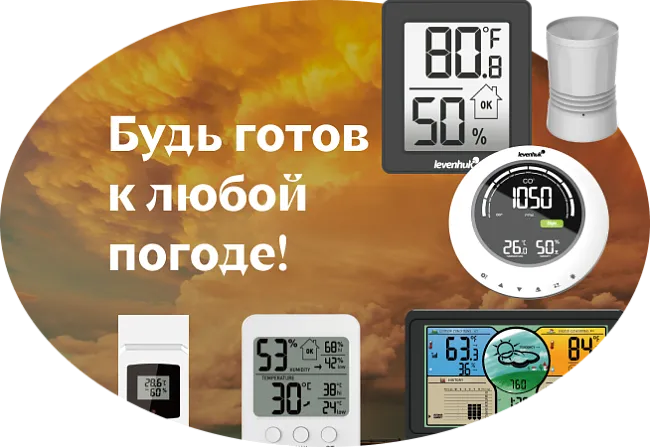 В серии Levenhuk Wezzer PLUS представлены приборы, расширенный функционал которых понравится требовательным пользователям. Это термометры, термогигрометры, метеостанции (в том числе с Wi-Fi) и детекторы углекислого газа. Можно выбрать гаджет с цветным или монохромным ЖК-экраном. Многие из приборов не только оповещают о погоде, но и выполняют функцию стильных настольных часов с будильником и календарем. Определять температуру и влажность воздуха умеют все модели, некоторые также оснащены барометром, дождемером и опцией прогноза погоды. Большинство гаджетов поставляется с 1–3 беспроводными датчиками. Это позволяет охватить большую территорию, контролируя все капризы погоды и изменения микроклимата в помещениях.
