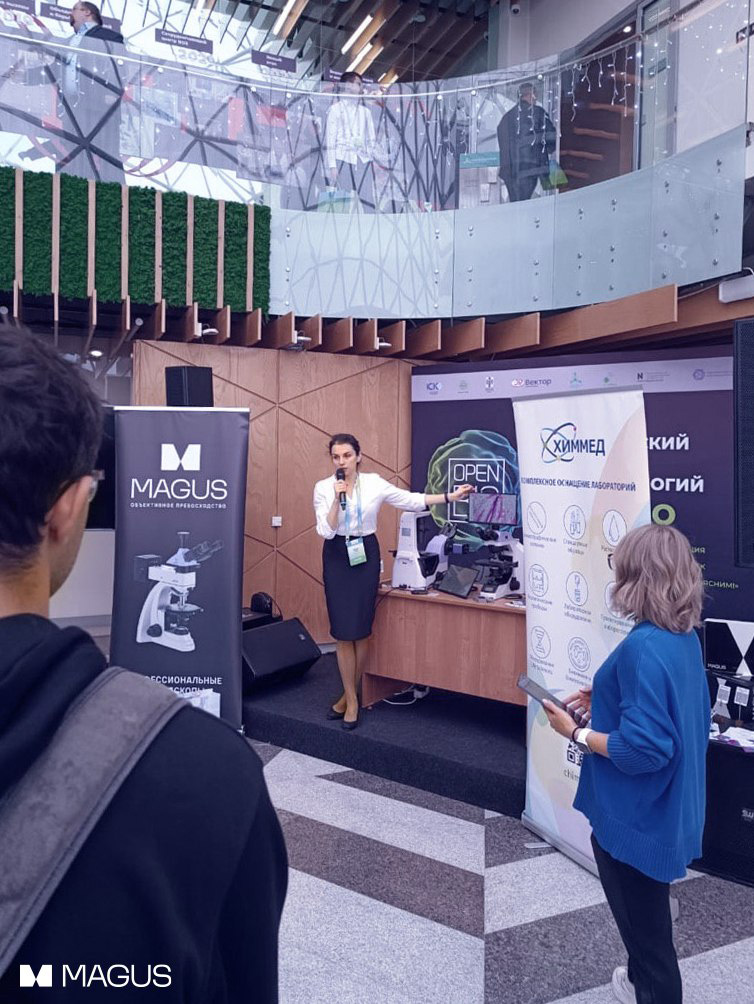 24–27 ноября в Новосибирске прошла научная выставка-конференция OpenBio, официальным участником которой стал бренд профессиональных микроскопов MAGUS. Мероприятие было посвящено открытиям, инновациям и важным событиям в сферах вирусологии, молекулярной биологии, биотехнологии, биофизики, биоинформатики и медицины. Для обсуждения насущных вопросов и обмена знаниями на одной площадке собрались разные представители отрасли: ученые, студенты, специалисты из органов власти, институтов развития инфраструктуры, медицинских клиник, бизнесов.