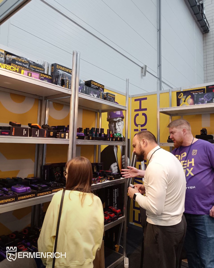 Покупатели проявляли живой интерес ко всему ассортименту, но особым спросом пользовались наши осенне-зимние бестселлеры: тепловизоры, лазерные рулетки и уровни, кабельные тестеры, видеоэндоскопы и дозиметры. Именно эти приборы посетители чаще всего выбирали для тестирования прямо на стенде – а наглядно демонстрировать их функции помогали эксперты Ermenrich.