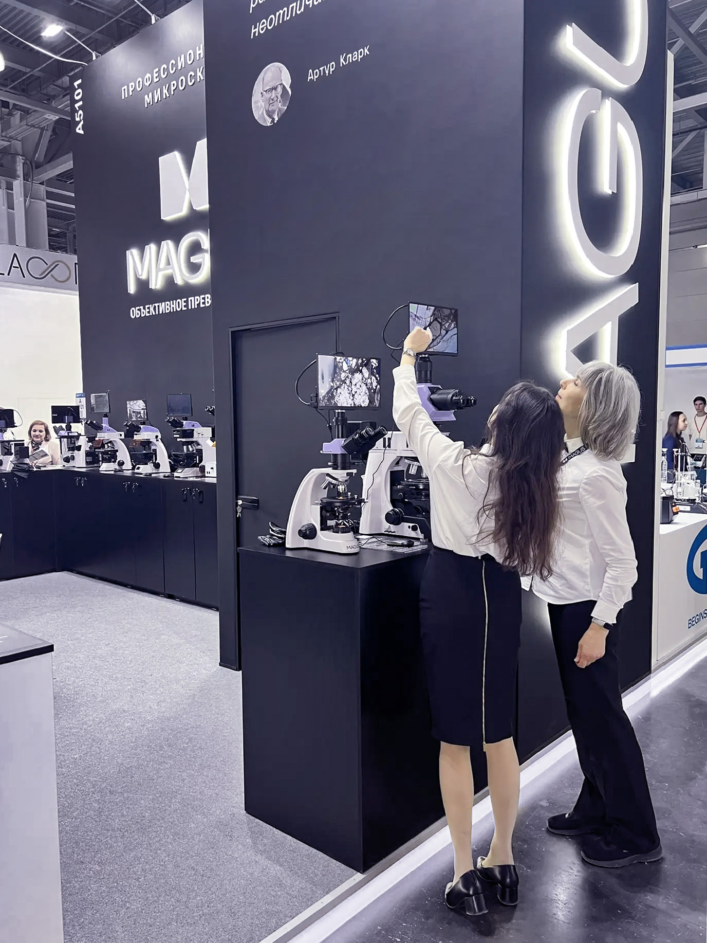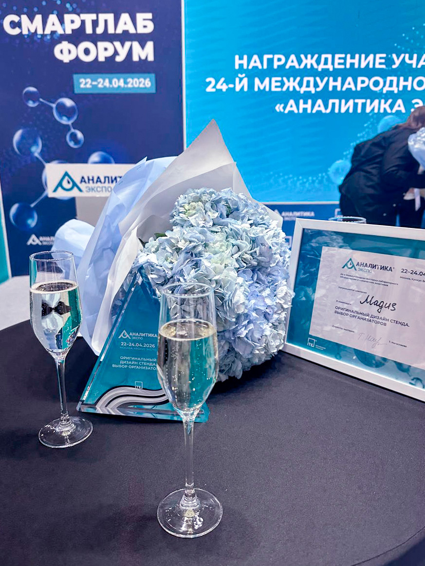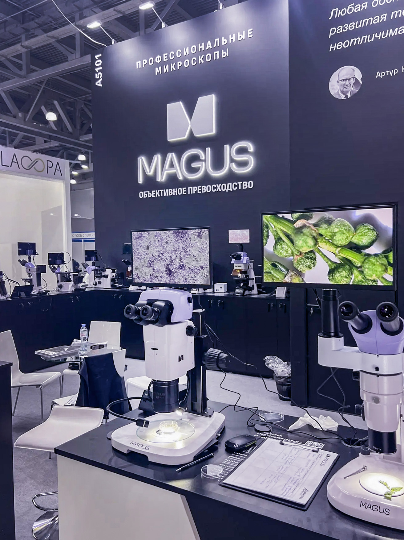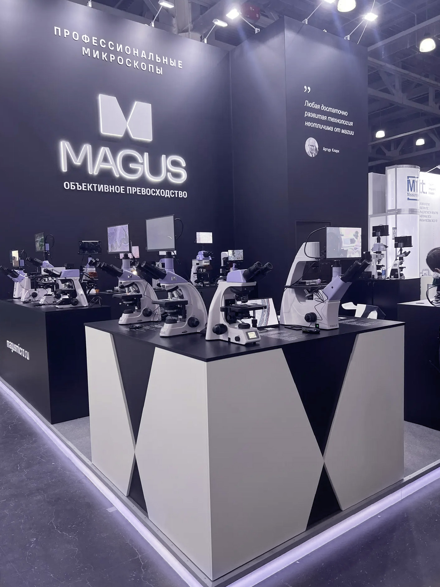 В Москве завершилась выставка «Аналитика Экспо 2026» – мероприятие, посвященное лабораторному оборудованию и химическим реагентам, собравшее под одной крышей более 6 тысяч посетителей. Бренд профессиональных микроскопов MAGUS не только представил свое оборудование на таком масштабном событии, но и получил награду от организаторов в номинации «Оригинальный дизайн стенда» – стильная черно-белая экспозиция запомнилась множеству гостей, а нашей команде был вручен памятный диплом.
