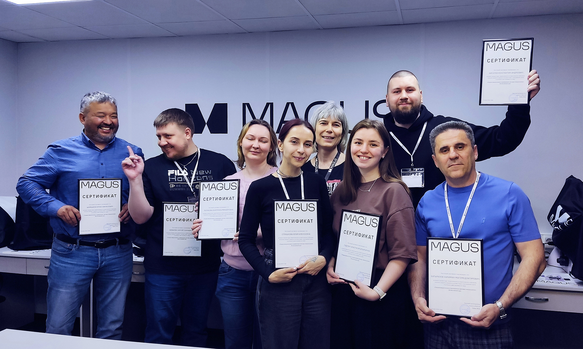 Участники получили знания по программе «Теория микроскопии и применение световых микроскопов MAGUS», сдали экзамен, традиционно завершающий курс, и получили сертификаты, подтверждающие их новоприобретенный статус официальных дилеров MAGUS!