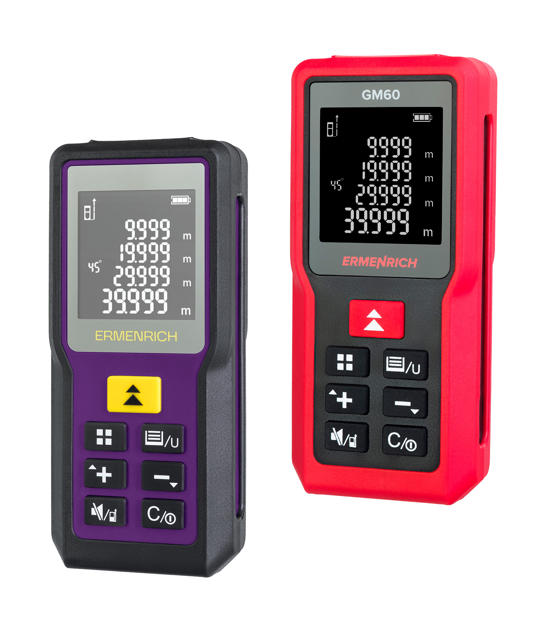 Ermenrich Reel PRO GM60 – лазерная рулетка, предназначенная для решения широкого спектра задач в проектной деятельности и подготовке чертежей, в строительстве и ремонте, на производственном предприятии. Рулетка производит линейные замеры (расстояния, длина деталей и заготовок), вычисляет значения углов, площади и объемы помещений и резервуаров. Максимальная измеряемая длина (сторона помещения) – 60 метров. Благодаря встроенной функции «Пифагор» инструмент позволяет определить расстояние путем вычислений по промежуточным точкам. Эта функция оптимальна для проведения работ в помещениях сложной формы.