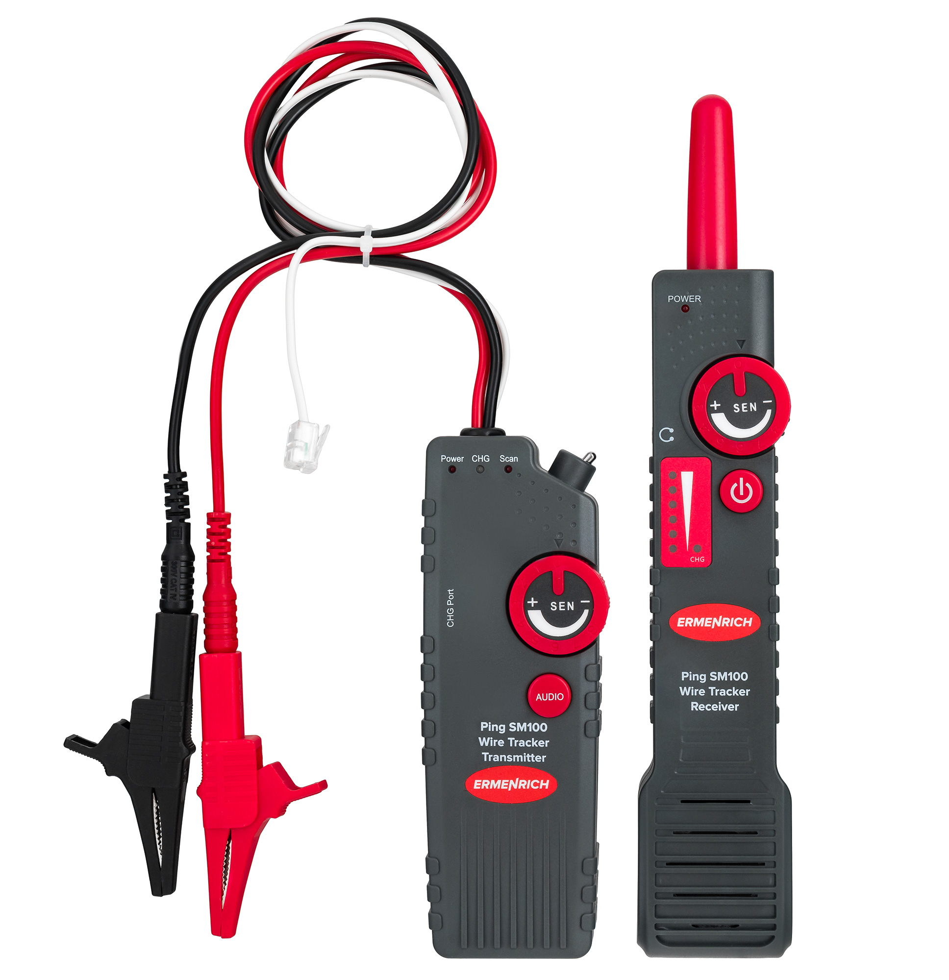 Трассоискатель Ermenrich Ping SM100 состоит из передатчика и приемника, для каждого из них можно настроить чувствительность. Оба устройства питаются от литиевых аккумуляторов емкостью 1400 мАч с зарядкой через кабель USB (входит в комплект поставки). Для работы при сильном шуме в комплектации предусмотрены наушники, которые подключаются к приемнику.