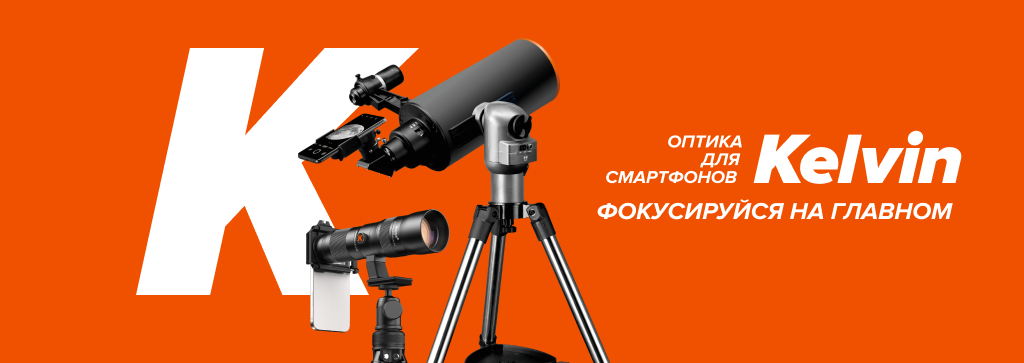 Фототелескопы, фотомикроскопы и фотобинокли Kelvin легко крепятся к смартфону и делают фото и видео с высокой четкостью.
