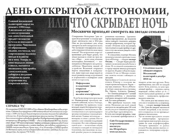 Интернет-журнал «Теснота» о Дне открытой астрономии.