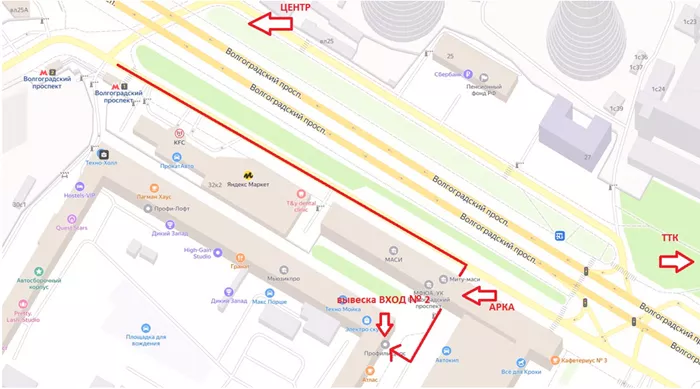 - пешком: от м. Волгоградский проспект пройти 20 метров до ТК «Техно-Холл Волгоградский»: удобнее всего сесть в первый вагон из центра, выйти из дверей налево; посмотреть видео